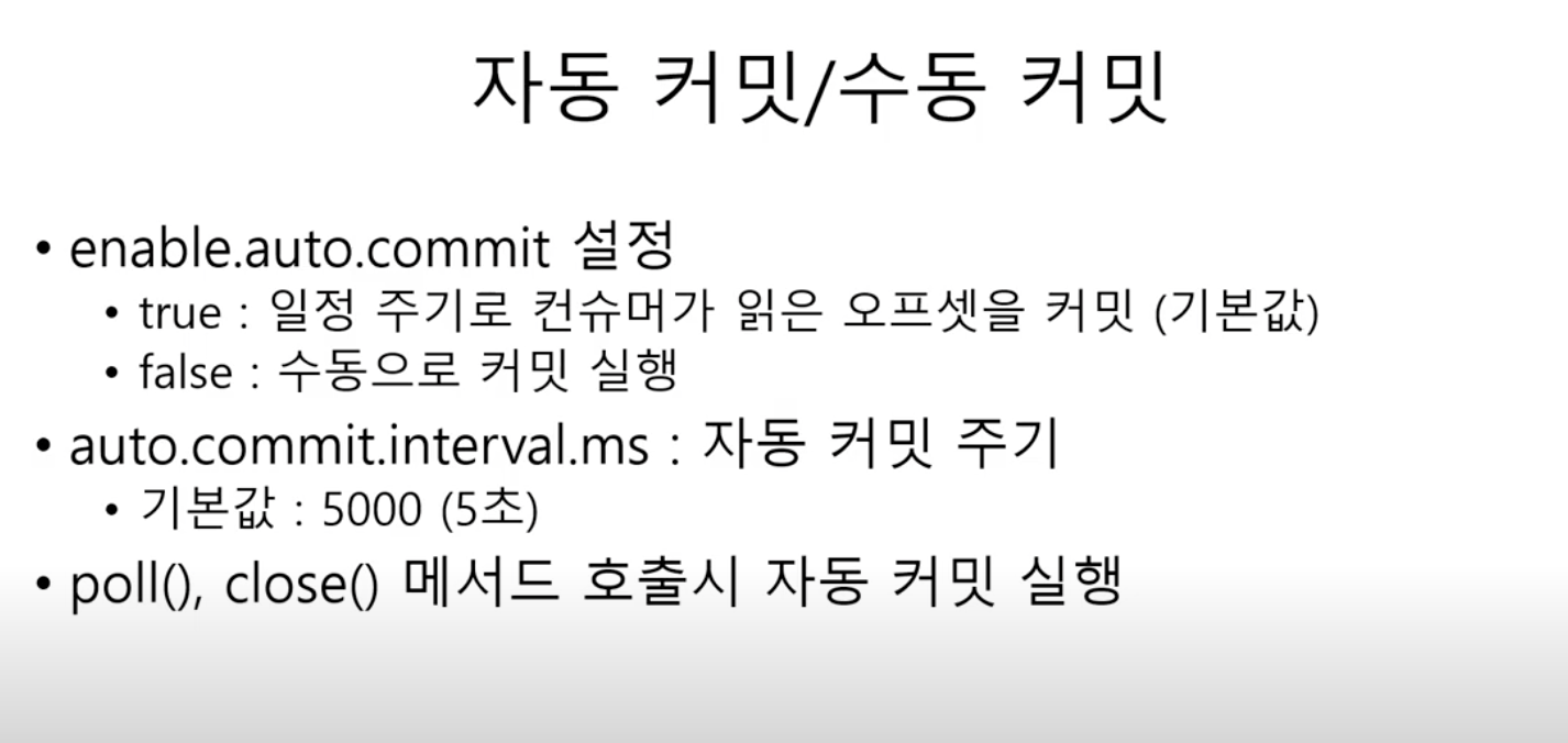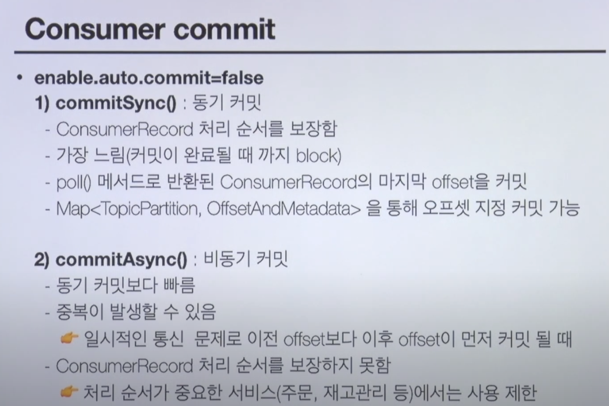 - commitSync() 또는 추가적인 방법으로 데이터 유실/ 중복 방지