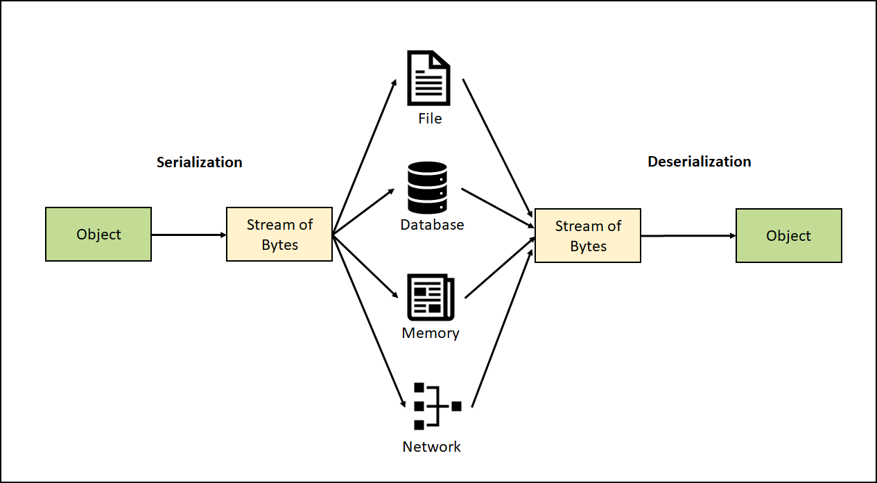 - 역직렬화(복호화, 언마샬링) : 데이터를 바이트열 -> 인메모리 표현으로 변환