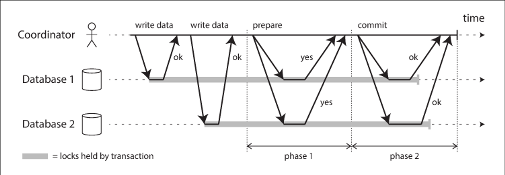 - Coordinator 역할 : 트랜잭션 요청이 들어왔을 때, Prepare, Commit 단계를 거쳐 트랜잭션 담당2PC : 주 DB - 보조 DB 사이에 트랜잭션을 조율하는 Coordinator가 존재