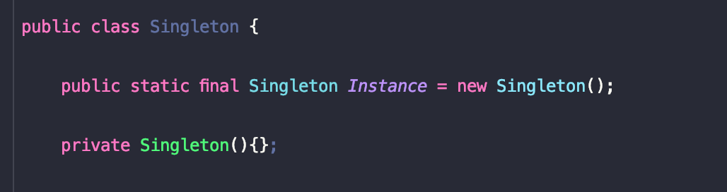 - 해당 instance 를 public static final 필드로 만들고 생성자의 접근제어자를 private으로 설정
