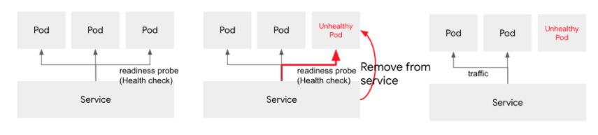 - 만약 파드가 준비되지 않았다고 한다면 엔드포인트에서 해당 파드는 제거되고 요청이 들어오지 않는다.