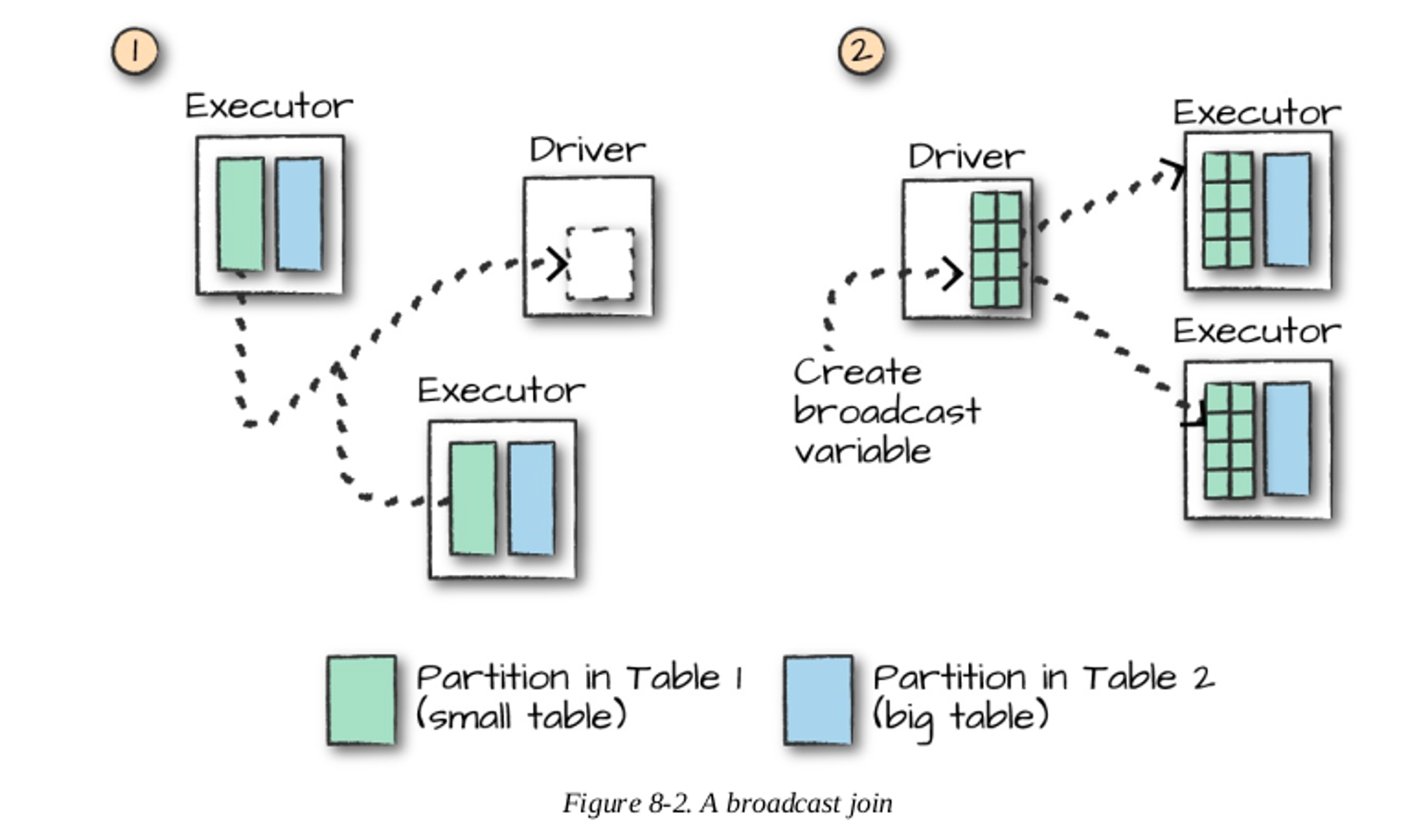 - 테이블이 단일 워커 노드의 메모리 크기에 적합한 정도로 작은 경우 조인 연산을 최적화 할 수 있다.