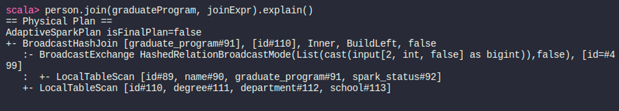 person.join(broadcast(graduateProgram), joinExpr).explain()