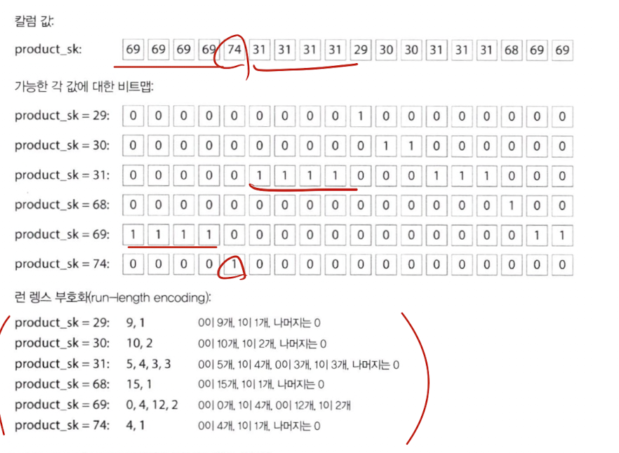 - 기본 정렬 칼럼에 고유 값을 많이 포함하지 않는다면 정렬한 후 기본 정렬 칼럼은 연속해서 같은 값이 길게 반복되기 때문에 칼럼 압축에 좋음